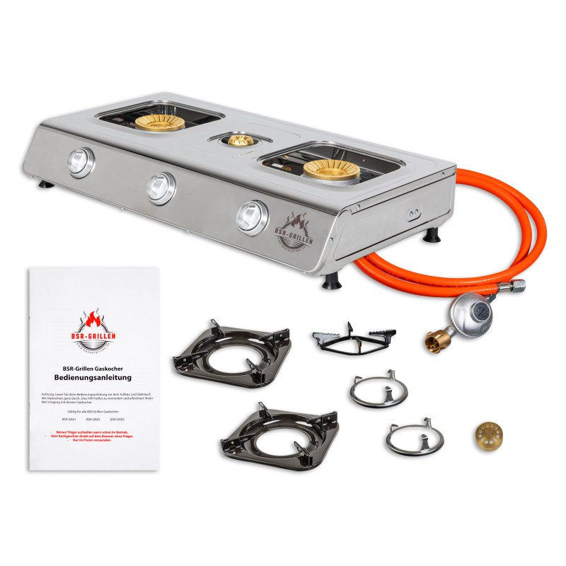 BSR-Grillen Edelstahl-Propangaskocher 3-flammig 10,8 KW mit Piezozündung und Turboeffekt